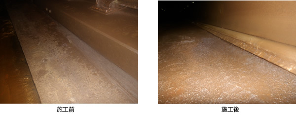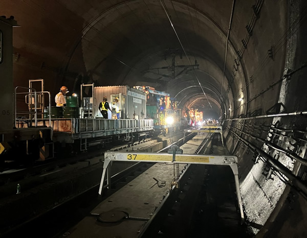 工法等詳細:山陽新幹線の新下関~小倉間の新関門トンネルは、関門海峡下を通過する海底トンネルである。 当該箇所は高温多湿な条件に加え、塩害により劣化したスラブ板の交換を2013年までに実施してきた。 一方で継続的な塩害などによりスラブ板交換箇所のてん充層の劣化が著しく新たな樹脂材料を使用したスラブてん充層修繕を施工しており、生産性向上やコスト削減などを考慮して専用機械であるスラブ交換機編成を用いて日当たり2枚のてん充層修繕工事を実施している。 |